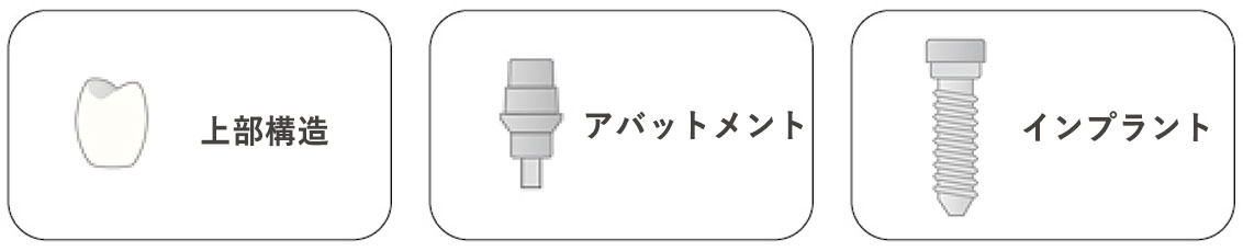 | 選べる上部構造 | 当院のインプラントは、上部構造・アパットメント・インプラントから成る3層構造です。