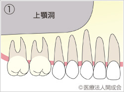 それに満たない場合は、骨を増やす治療が必要となります。 上あごの骨の中、奥歯付近の歯の上には「上顎洞(じょうがくどう)」という空洞があり、鼻腔へとつながっています。歯がない状態を放置すると、上顎洞が広がって骨が更に薄くなる事があります。その場合、骨の厚みに合わせて歯茎も下がってきます。