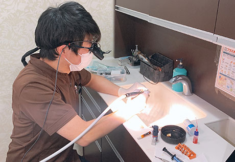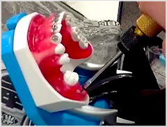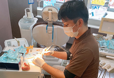 途中で衛生士やアシスタントが歯科医師に代わり、模型でインプラント治療をする実習をしました。