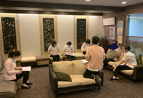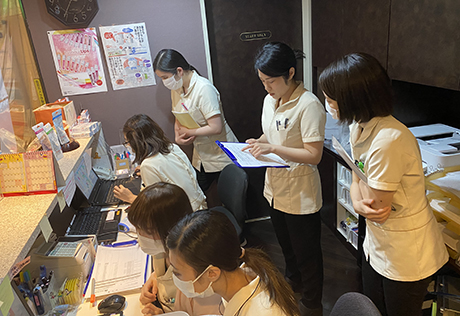 自費診療の補綴についてミーティング・受付診療受取処理等のロールプレイングを行いました。